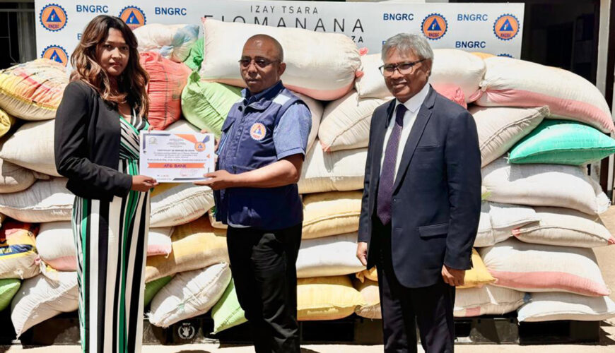 La remise officielle des dons auprès du BNGRC a eu lieu le 24 Mars 2026, en présence du Président du SIM et des entreprises donatrices. Le BNGRC s’est chargé de l’acheminement des aides vers Toamasina.
